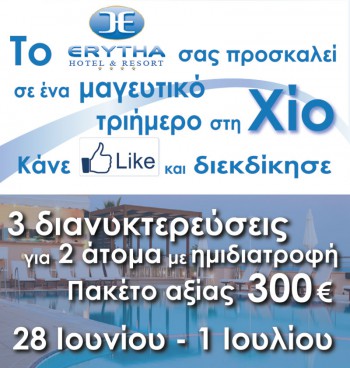 Διαγωνισμός Erytha HOTEL & RESORT με δώρο ένα τριήμερο στη Χίο