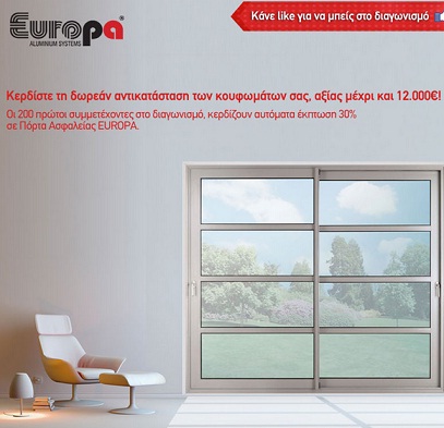 Το Europa Profil Aluminium SA διοργανώνει διαγωνισμό και σας δίνει τη δυνατότητα να κερδίσετε την αντικατάσταση των παλιών κουφωμάτων του σπιτιού σας.