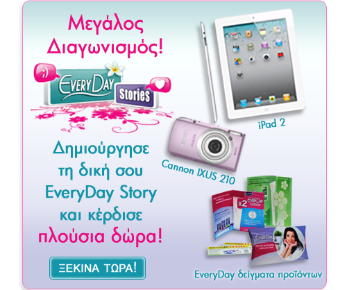 Τα EveryDays διοργανώνουν μεγάλο διαγωνισμό στο www.everydaystories.gr και σας δίνουν τη δυνατότητα να κερδίσετε ένα iPad 2 και πλούσια δώρα! Πιο συγκεκριμένα, τα δώρα του διαγωνισμού είναι: