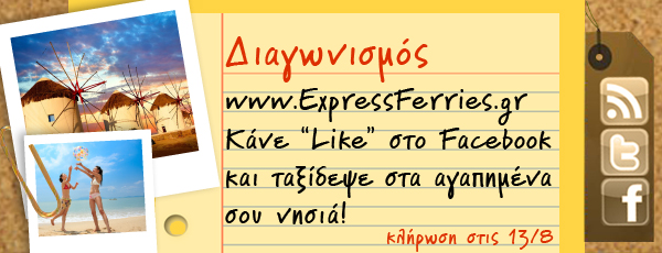 To ExpressFerries.gr διοργανώνει διαγωνισμό και δίνει τη δυνατότητα σε 3 τυχερούς να κερδίσουν ακτοπλοϊκά εισιτήρια για δύο άτομα για ένα ελληνικό νησί.