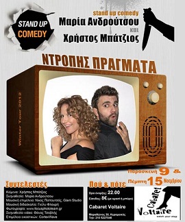 Το F Radio διοργανώνει διαγωνισμό και σας δίνει τη δυνατότητα να κερδίσετε 2 διπλές προσκλήσεις για την stand up comedy ”Ντροπής πράγματα” με την Μαρία Ανδρούτσου και τον Χρήστο Μπάτζιο που θα γίνει την Πέμπτη 15/11 και ώρα 22:00 στο Cabaret Voltaire (Μαραθώνος 30, Κεραμεικός).