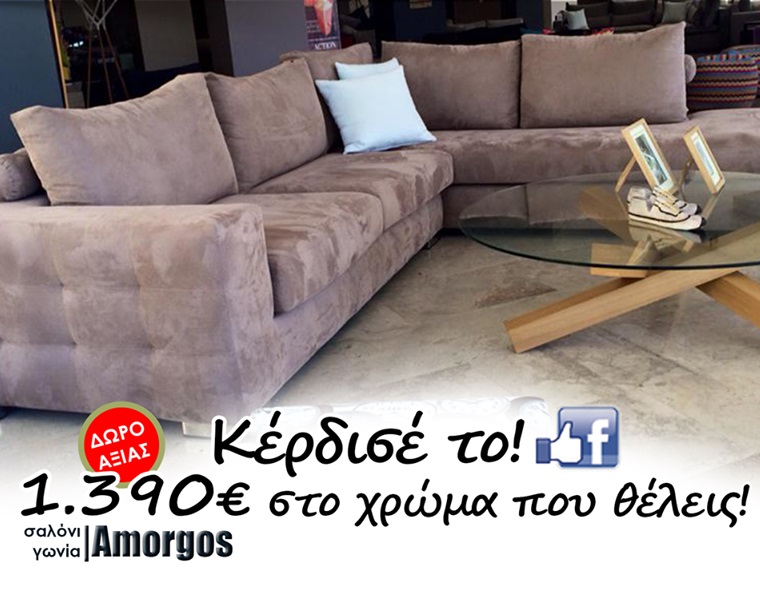 To FACTORY Sofa διοργανώνει διαγωνισμό και σας δίνει τη δυνατότητα να κερδίσετε ένα σαλόνι AMORGOS σε διάσταση 3.00μ. Χ 2.50μ. Ελληνικής κατασκευής με αδιάβροχο-αλέκιαστο ύφασμα, στο χρώμα που σας αρέσει!