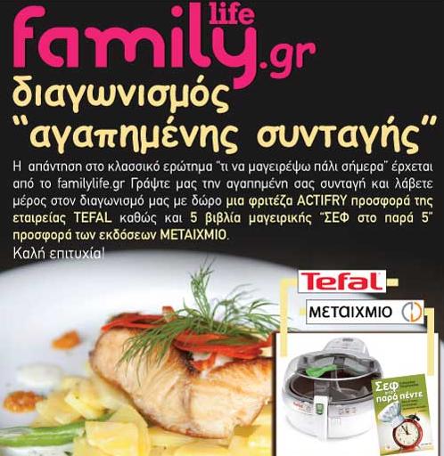 Το familylife.gr διοργανώνει διαγωνισμό και σας δίνει τη δυνατότητα να κερδίσετε 1 φριτέζα ACTIFRY της TEFAL και 5 βιβλία μαγειρικής “ΣΕΦ στο παρά 5” προσφορά των εκδόσεων ΜΕΤΑΙΧΜΙΟ.