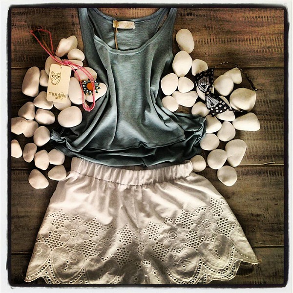 Το Fashionable.gr σε συνεργασία με την ελληνική εταιρία ένδυσης Moutaki φροντίζουν να γνωρίσετε ακόμη καλύτερα την εταιρία και τις δημιουργίες της, καθώς χαρίσουν ένα κουκλίστικο σύνολο από τη τελευταία καλοκαιρινή τους συλλογή. Το σύνολο αποτελείται από ένα crop top σε απόχρωση του γαλάζιου και από το shorts της φωτογραφίας.