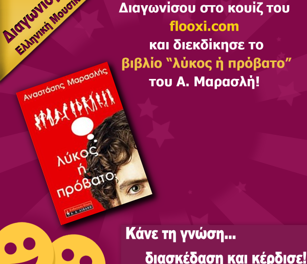 Το flooxi.com σας καλεί να εγγραφείτε στο δωρεάν κουίζ “Ελληνική Μουσική” και να διεκδικήστε το βιβλίο “λύκος ή πρόβατο;” του οίκου Λιβάνη!