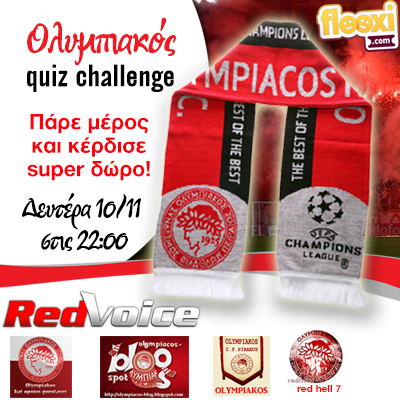 Παίξτε στο εβδομαδιαίο Olympiakos Quiz Challenge που διοργανώνει το flooxi.com και κερδίστε ένα αυθεντικό κασκόλ του Ολυμπιακού.