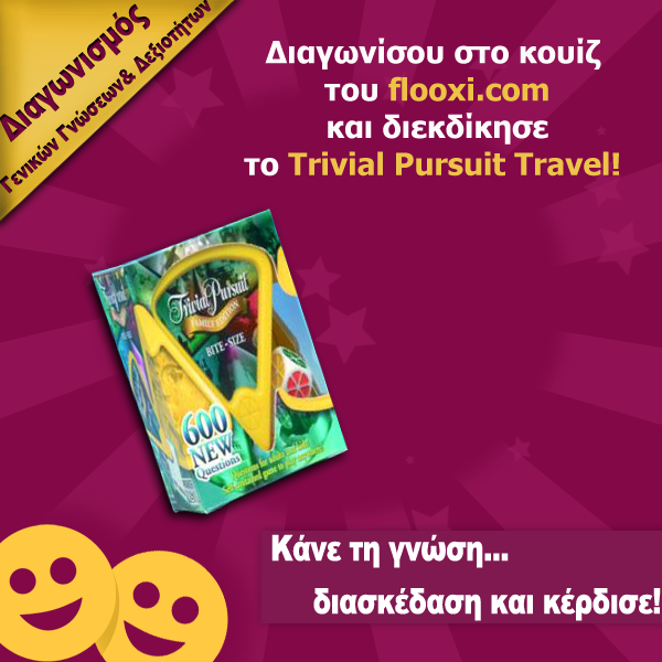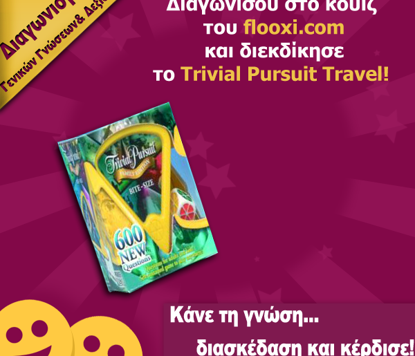 Το flooxi.com σας καλεί να δηλώστε συμμετοχή στο δωρεάν κουίζ “Γενικών Γνώσεων & Δεξιοτήτων” και σας δίνει τη δυνατότητα να κερδίσετε ένα επιτραπέζιο Trivial Pursuit Travel!