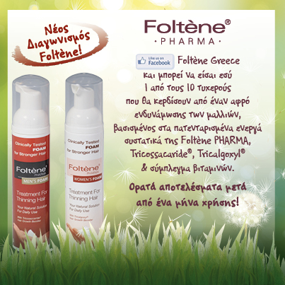Η σελίδα foltene greece διοργανώνει διαγωνισμό και σας δίνει τη δυνατότητα να κερδίσετε 10 αφρούς ενδυνάμωσης μαλλιών Foltene Pharma!