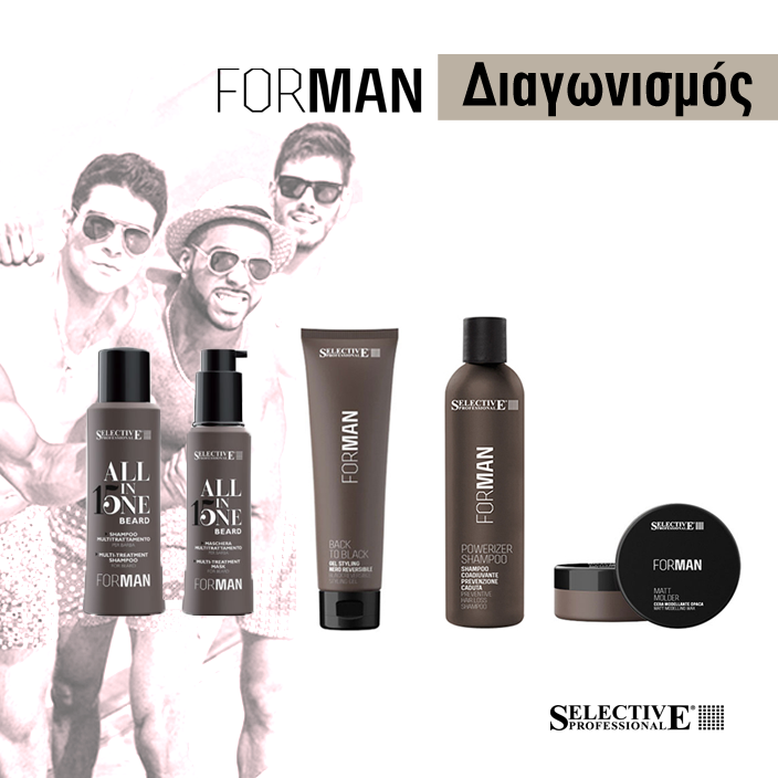 H ForMan Selective Professional Greece διοργανώνει διαγωνισμό και δίνει τη δυνατότητα σε 5 τυχερούς να κερδίζουν από ένα set 5 προϊόντων που περιλαμβάνει: