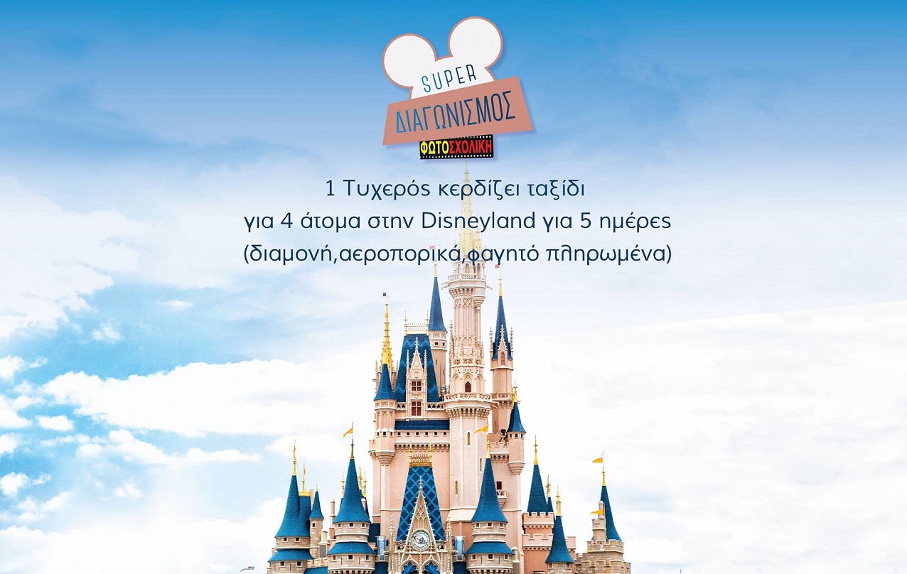 H Φωτοσχολική διοργανώνει διαγωνισμό και σας δίνει τη δυνατότητα να κερδίσετε ένα 5ήμερο ταξίδι για 4 άτομα με όλα τα έξοδα πληρωμένα (διαμονή, αεροπορικά, φαγητό) στη Disneyland!