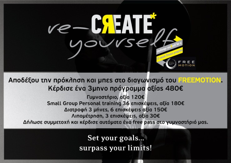 Το Freemotion Gym διοργανώνει διαγωνισμό και σας δίνει τη δυνατότητα να κερδίσετε ένα τρίμηνο πρόγραμμα γυμναστικής!