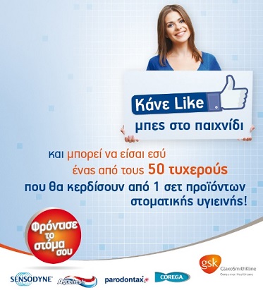 Η σελίδα ΦΡΟΝΤΙΣΕ ΤΟ ΣΤΟΜΑ ΣΟΥ διοργανώνει διαγωνισμό και σας δίνει τη δυνατότητα να κερδίσετε 50 σετ προϊόντων στοματικής υγιεινής που περιλαμβάνουν από μια οδοντόκρεμα Sensodyne, Aquafresh και Parodontax, ένα gel Biotene, οδοντόβουρτσα Sensodyne & οδοντόβουρτσα Aquafresh, μία συσκευασία Corega καθαριστικά δισκία για τεχνητές οδοντοστοιχίες και μια συσκευασία Corega στερεωτική κρέμα οδοντοστοιχιών.