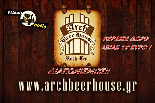 Το Fthinopolis.gr διοργανώνει διαγωνισμό και σας δίνει τη δυνατότητα να κερδίσετε για 5 άτομα, 1 πύργο 5 Lt μπύρα της επιλογής σας + 1 ποικιλία mix grill μεγάλη + 1 μπρέτσελ. Δώρο αξίας 75 ευρώ από την Arch Beer House!