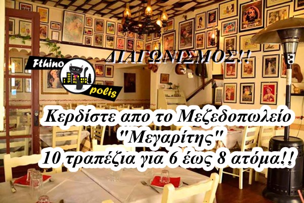 Το fthinopolis.gr διοργανώνει διαγωνισμό και δίνει τη δυνατότητα να σε 10 άτομα να κερδίσουν από 1 τραπέζι για 6 έως 8 άτομα, με όλα τα φαγητά πληρωμένα για την Κυριακή το μεσημέρι στις 25 Μαΐου 2014!