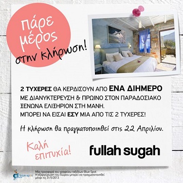 Η FullahSugah διοργανώνει διαγωνισμό και δίνει τη δυνατότητα σε 2 τυχερές να κερδίσουν από ένα διήμερο ταξίδι στον ξενώνα Ελιξήριον στη Μάνη.