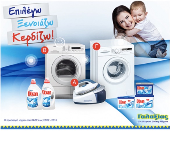 Διαγωνισμός ΓΑΛΑΞΙΑΣ με δώρο πλυντήριο, στεγνωτήριο και σύστημα σιδερώματος