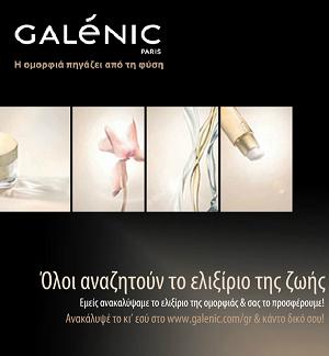 Η Galénic Greece διοργανώνει διαγωνισμό και σας δίνει τη δυνατότητα να κερδίσετε ένα (1) προϊόν περιποίησης σώματος από τη σειρά καλλυντικών και παραφαρμακευτικών προϊόντων «Elancyl» ή «Klorane» ή «Galenic».