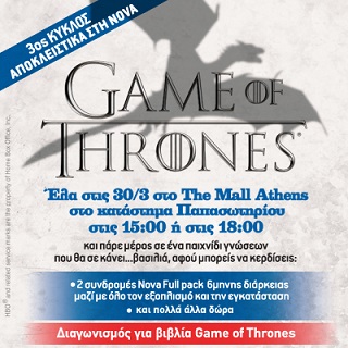Η σελίδα Game Of Thrones – Nova διοργανώνει διαγωνισμό και σας δίνει τη δυνατότητα να κερδίσετε το βιβλίο «Θύελλα από ατσάλι: Παγωμένες λεπίδες» του Game Of Thrones.