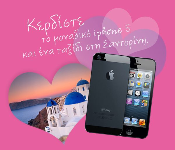 Το Gamoi.com διοργανώνει διαγωνισμό και σας δίνει τη δυνατότητα να κερδίσετε 1 iPhone 5 για τον πρώτο τυχερό της κλήρωσης και 1 ταξίδι στη Σαντορίνη για 2 άτομα σε ξενοδοχείο 3 αστέρων για τον δεύτερο τυχερό της κλήρωσης.