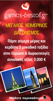 Η ιστοσελίδα gamos-bestof.gr διοργανώνει μεγάλο χειμερινό διαγωνισμό με με ταξίδια στην Ευρώπη και δωροεπιταγές. Πιο συγκεκριμένα, τα δώρα του διαγωνισμού είναι: