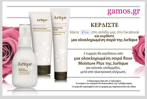 Το gamos.gr διοργανώνει διαγωνισμό και σας δίνει τη δυνατότητα να κερδίσετε 3 ολοκληρωμένες σειρές καλλυντικών Rose Moisture Plus, της Jurlique.