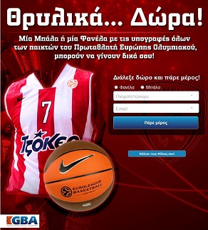 Διαγωνισμός GBAcademy με δώρο μία συλλεκτική μπάλα και μια φανέλα με τις υπογραφές όλων των παικτών του Πρωταθλητή Ευρώπης Ολυμπιακού