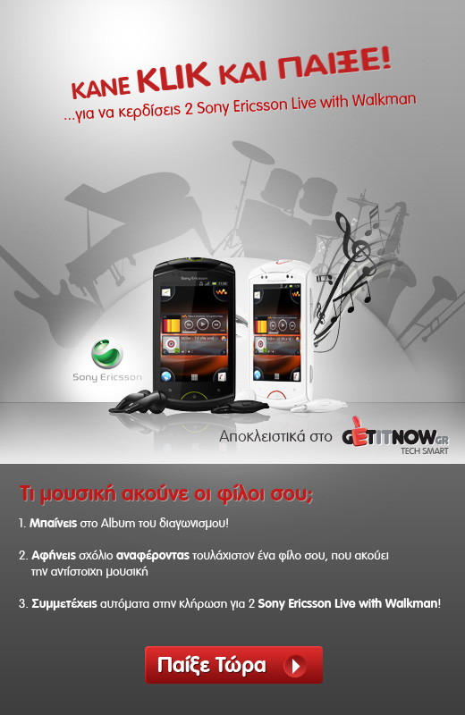 Το Get it Now διοργανώνει διαγωνισμό και σας δίνει τη δυνατότητα να κερδίσετε 2 μοναδικά Sony Ericsson Live with Walkman.