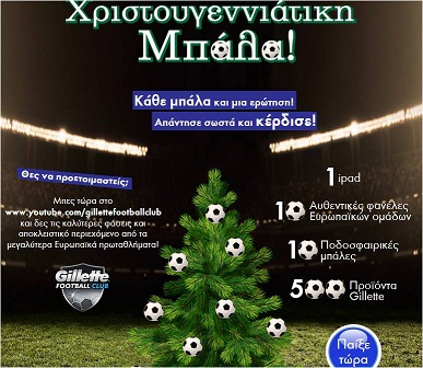 Η σελίδα Gillette διοργανώνει διαγωνισμό και σας δίνει τη δυνατότητα να κερδίσετε 1 ipad, 10 αυθεντικές φανέλες Ευρωπαικών Ομάδων, 10 μπάλες ποδοσφαίρου και 500 προιόντα Gillette.