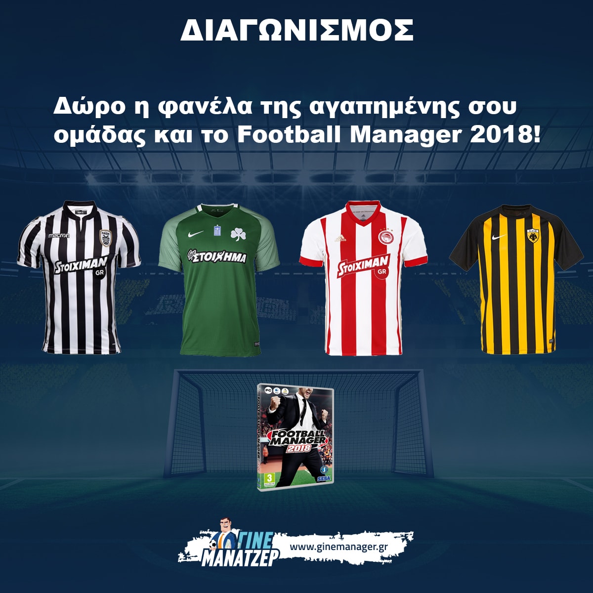 Η σελίδα Γίνε Μάνατζερ διοργανώνει διαγωνισμό και σας δίνει τη δυνατότητα να κερδίσετε την φανέλα της αγαπημένης σας ομάδας και ένα αντίτυπο του Football Manager 2018!