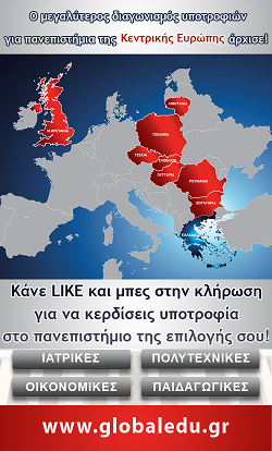 Η Global Education, ο μεγαλύτερος Εκπαιδευτικός Όμιλος για σπουδές στο εξωτερικό που εκπροσωπεί πάνω από 45 Πανεπιστήμια της Kεντρικής Ευρώπης, δίνει 5 υποτροφίες σε υποψήφιους φοιτητές που ενδιαφέρονται να ακολουθήσουν σε αναγνωρισμένες σχολές στο εξωτερικό, Ιατρικές, Πολυτεχνικές, Οικονομικές, Παιδαγωγικές και Νομικές σπουδές.