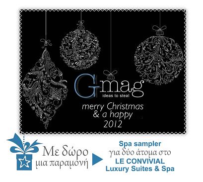 Tο Gmag σας εύχεται καλά ΧΡΙΣΤΟΥΓΕΝΝΑ και προσφέρει σε έναν τυχερό μια παραμονή Spa sampler για δύο άτομα στο LE CONVIVIAL Luxury Suites & Spa.