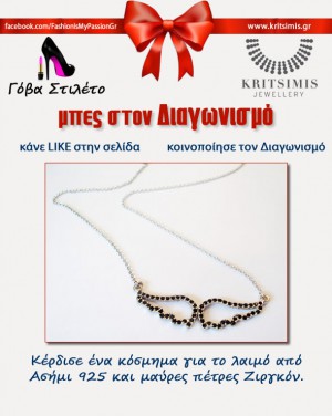 Το Gova Stiletto χαρίζει σε ένα τυχερό, ένα υπέροχο κόσμημα για το λαιμό από Ασήμι 925 και μαύρες πέτρες Ζιργκόν προσφορά του καταστήματος KRITSIMIS JEWELLERY στην Θεσσαλονίκη.