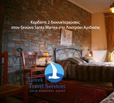 Το greektravelservices.gr διοργανώνει διαγωνισμό και σας δίνει τη δυνατότητα να κερδίσετε 2 διανυκτερεύσεις για 2 ατόμα στον παραδοσιακό ξενώνα “Santa Marina” στο Λουτράκι Αριδαίας!