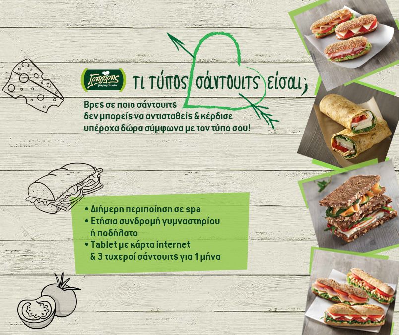 3 ακόμα τυχεροί (ένας από κάθε τύπο σάντουιτς) θα κερδίσουν (έτοιμα) σάντουιτς της επιλογής τους για ένα μήνα (συνολικά 30 σάντουιτς ο κάθε νικητής).