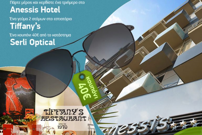 Το Grekomania.com διοργανώνει διαγωνισμό και σας δίνει τη δυνατότητα να κερδίσετε 3ήμερο διαμονής στο ξενοδοχείο Anessis Thessaloniki και γεύμα δύο ατόμων στοTiffany’s Restaurant.