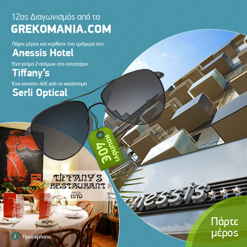 Διαγωνισμός Grekomania.com με δώρο 3ήμερο στο Anessis Thessaloniki και γεύμα στο Tiffany’s Restaurant