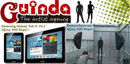 Το Guinda Models Agency διοργανώνει διαγωνισμό και σας δίνει τη δυνατότητα να κερδίσετε μια επαγγελματική φωτογράφιση αξίας 500 ευρώ ή ένα Tablet Samsung Galaxy Tab II 10,1 αξίας 400 ευρώ.