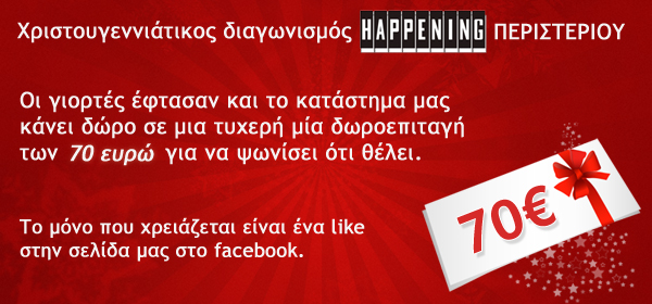 Διαγωνισμός Happening Περιστερίου με δώρο μια δωροεπιταγή αξίας 70 ευρώ
