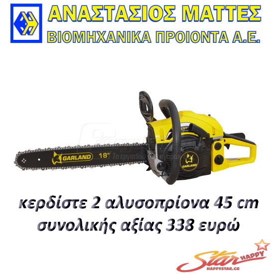 Διαγωνισμός happystar.gr με δώρο 2 αλυσοπρίονα GARLAND συνολικής αξίας 338 ευρώ