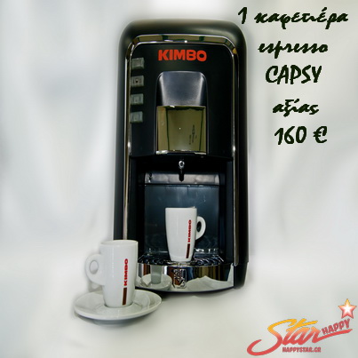 Το happystar.gr διοργανώνει διαγωνισμό και σας δίνει τη δυνατότητα να κερδίσετε μία μηχανή Espresso CAPSY από την Espresso Kimbo Ioannis Voutos αξίας 160 ευρώ!