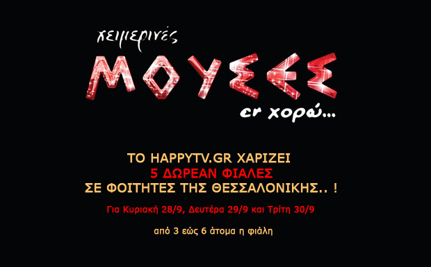 Το HappyTv.gr χαρίζει 5 δωρεάν φιάλες, για τις Μούσες εν χορώ στη Θεσσαλονίκη.