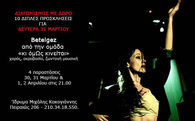 Το HappyTv.gr διοργανώνει διαγωνισμό και σας δίνει τη δυνατότητα να κερδίσετε 10 διπλές προσκλήσεις για την παράσταση «Betelgez»!