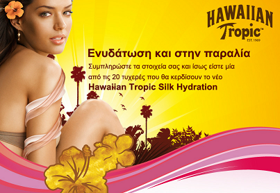Η σελίδα Hawaiian Tropic Greece διοργανώνει διαγωνισμό και σας δίνει τη δυνατότητα να κερδίσετε 20 Hawaiian Tropic Silk Hydration.