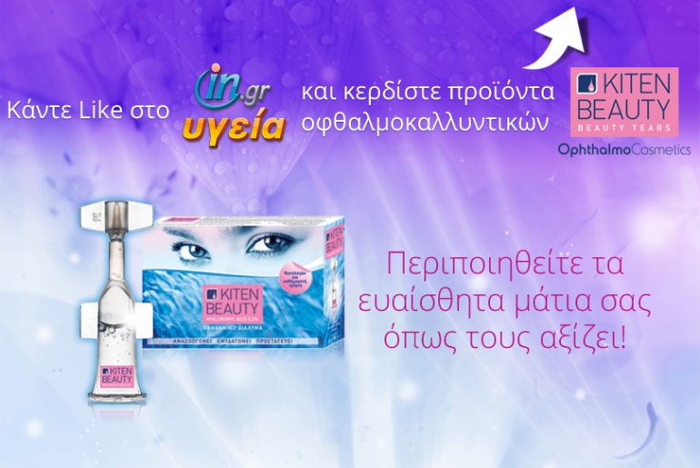 Το health.in διοργανώνει διαγωνισμό και σας δίνει τη δυνατότητα να κερδίσετε 30 συσκευασίες δακρύων ομορφιάς Kiten Beauty, ένα καλλυντικό οφθαλμικό διάλυμα που βασίζεται στο συνδυασμό ωφέλιμων αντιοξειδωτικών συστατικών, συνολικής αξίας 412 ευρώ.