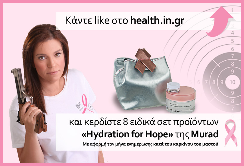 Για πρώτη φορά στην Ελλάδα, η εταιρεία καλλυντικών Murad στηρίζει τον Μήνα Ενημέρωσης για τον Καρκίνο του Μαστού και μέσω του health.in.gr σας δίνει την δυνατότητα να κερδίσετε 8 ειδικά σετ προϊόντων «Hydration for Hope», αξίας 49 ευρώ έκαστη.