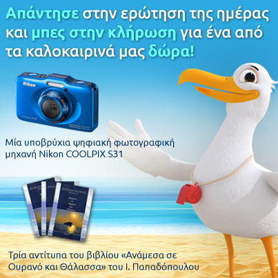 Η Helmepa – Ελληνική Ένωση Προστασίας Θαλάσσιου Περιβάλλοντος διοργανώνει διαγωνισμό και σας προσφέρει μία υποβρύχια ψηφιακή φωτογραφική μηχανή Nikon COOLPIX S31 και τρία αντίτυπα του βιβλίου «Ανάμεσα σε Ουρανό και Θάλασσα», του Πλοιάρχου Ι. Παπαδόπουλου!