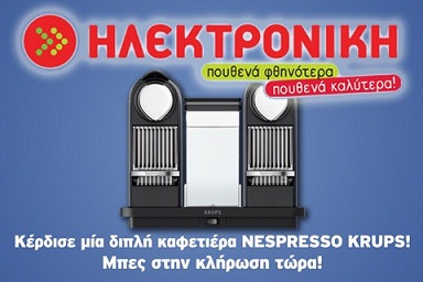 Η Ηλεκτρονική σου δίνει την ευκαιρία να κερδίσεις μία διπλή καφετιέρα espresso Krups ισχύος 2.520 Watt!