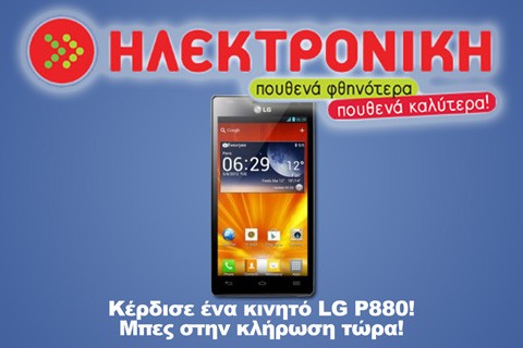 Η ΗΛΕΚΤΡΟΝΙΚΗ διοργανώνει διαγωνισμό και σας δίνει τη δυνατότητα να κερδίσετε ένα κινητό LG P880 με οθόνη 4,7″ και τετραπύρηνο επεξεργαστή.