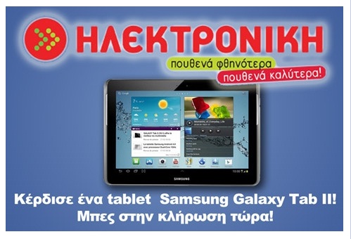 Η Ηλεκτρονική διοργανώνει διαγωνισμό και σας δίνει τη δυνατότητα να κερδίσετε ένα tablet Samsung Galaxy Tab II.