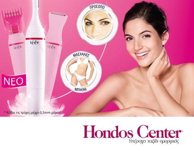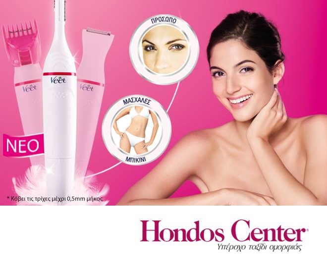 Tα Hondos Center διοργανώνει διαγωνισμό και δίνουν τη δυνατότητα σε 50 τυχερούς να κερδισουν από μία ηλεκτρική συσκευή Veet, η οποία τριμάρει απαλά και δίνει ακριβή σχηματισμό στα ευαίσθητα σημεία του σώματος!